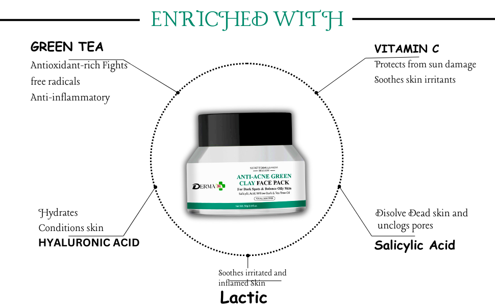DERMA KR Hyaluronic Face Sunscreen Cream & Anti ance Green face clay Pack for dark spot| For Women & Men |Pack Of 2
