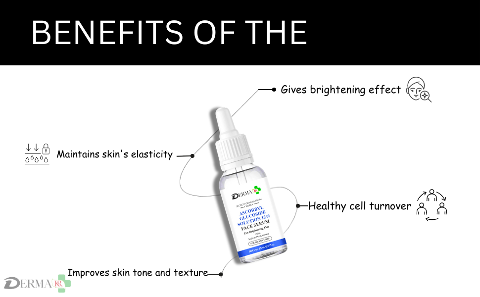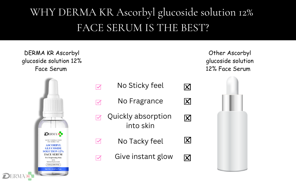 Face Serum :-Skincare routine with DERMA KR Ascorbyl Glucoside Solution 12% Face Serum, a potent elixir designed to transform your complexion. Formulated with a high concentration of ascorbyl glucoside, a stable derivative of vitamin C, this serum is your ticket to achieving brighter, firmer, and more radiant skin. Harnessing the power of ascorbyl glucoside, our serum delivers powerful antioxidant benefits to combat free radicals and protect the skin from environmental damage.