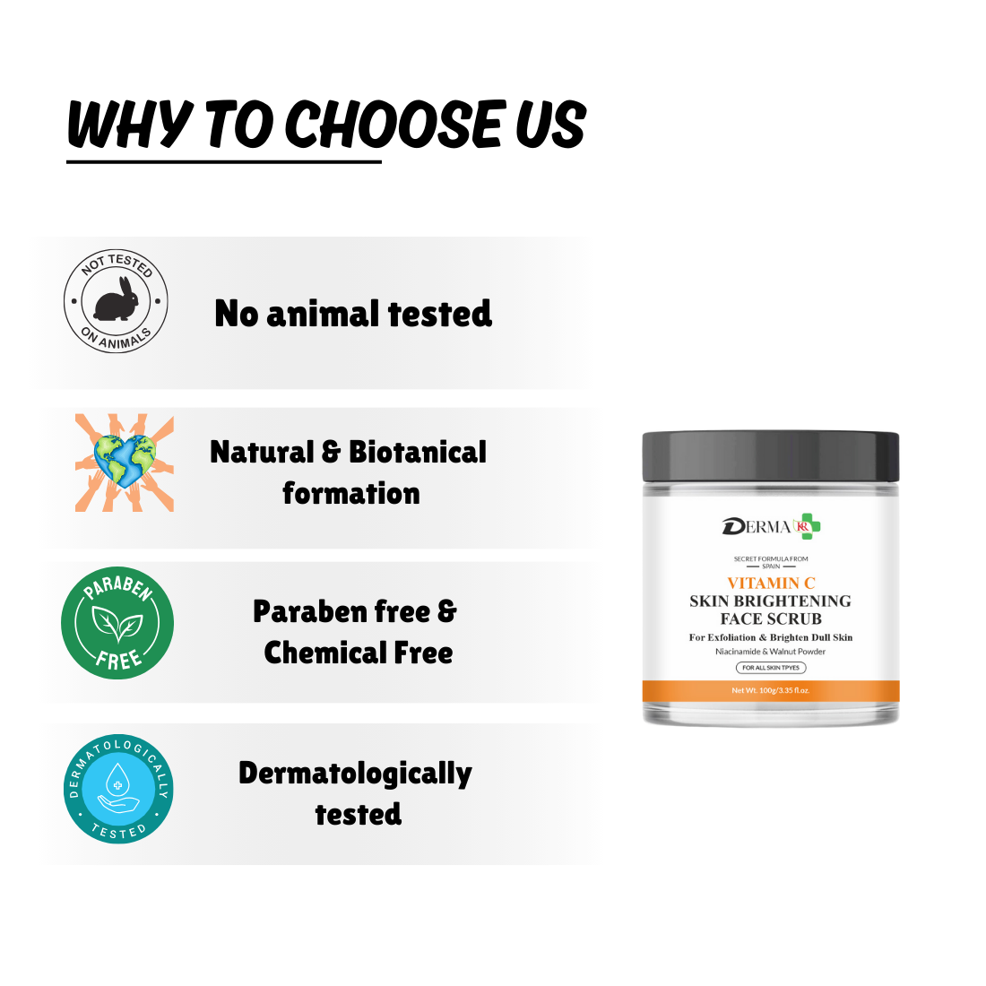 DERMA KR Vitamin C Skin Brightening FACE SCURB | Dead Skin Remover Scrub | For All Skin Types -100gm