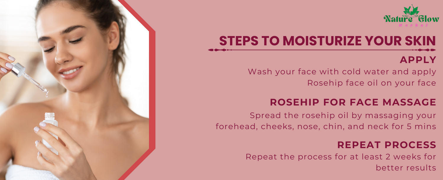 Rosehip :-Discover the reviving effects of Nature Glow Rosehip Facial Oil. Our cold-pressed, organic formula is expertly blended to provide the purest kind of natural skincare. This facial oil, which is plenty in antioxidants, vitamins A and C, is your go-to remedy for glowing, youthful skin.Utilise the power of nature to nourish your skin. The formula is lightweight and consumes quickly, leaving the skin feeling supple and nourished. Accept the anti-aging benefits of Nature Glow Rosehip Facial Oil and bid adieu to fine lines.Our environmentally friendly packaging, a recyclable glass bottle that enhances our commitment to sustainable beauty procedures, reflects our commitment to the environment. With Nature Glow Rosehip Facial Oil, you may improve your skincare regimen and reveal the natural glow.