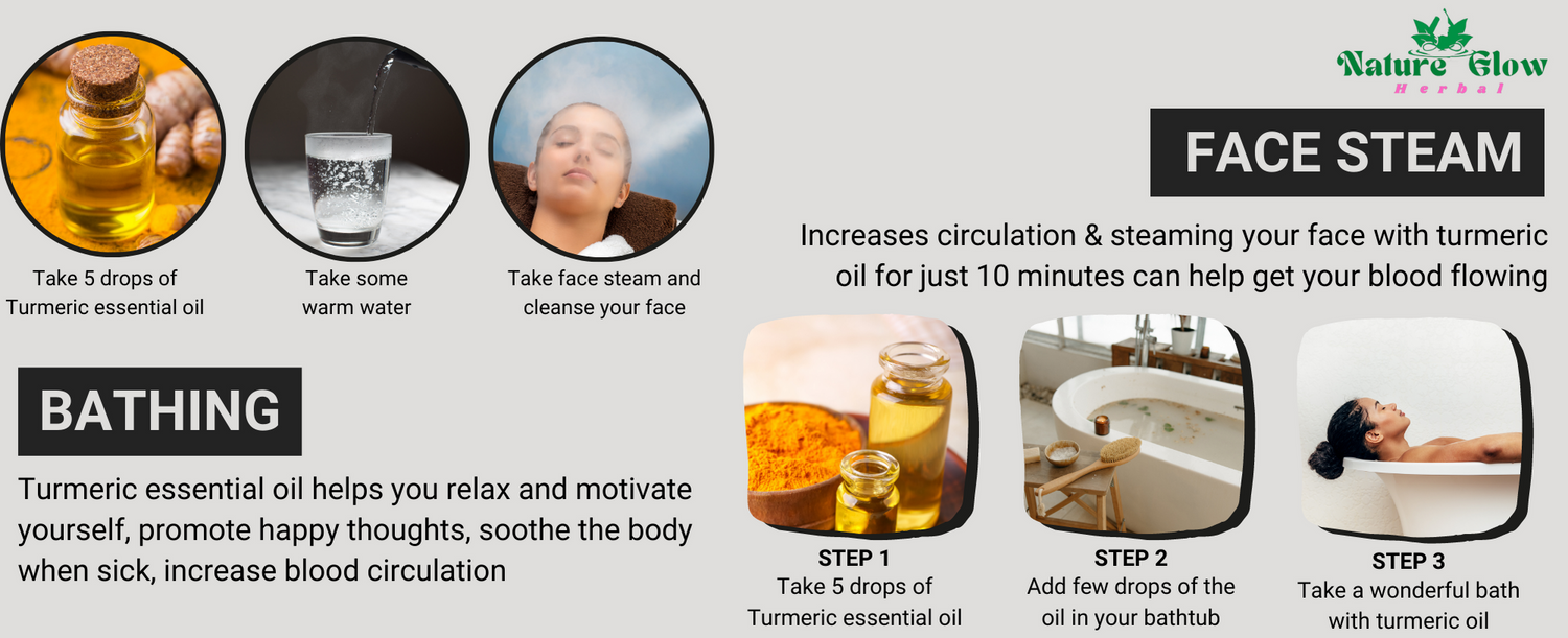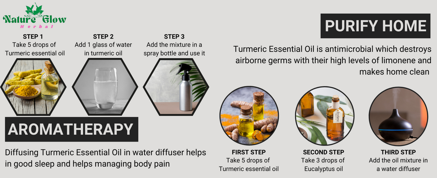 - Aromatherapy Benefits: Experience the soothing and rejuvenating effects of turmeric essential oil for relaxation, stress relief, and emotional balance.