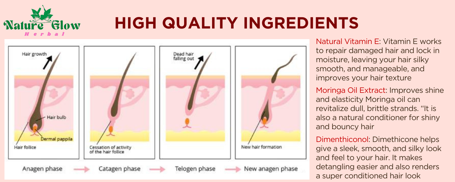 - Natural Ingredients: Our serum is a powerhouse of natural goodness, promoting hair health and shine. It is enhanced with premium ingredients like Argan Oil and Vitamin E.