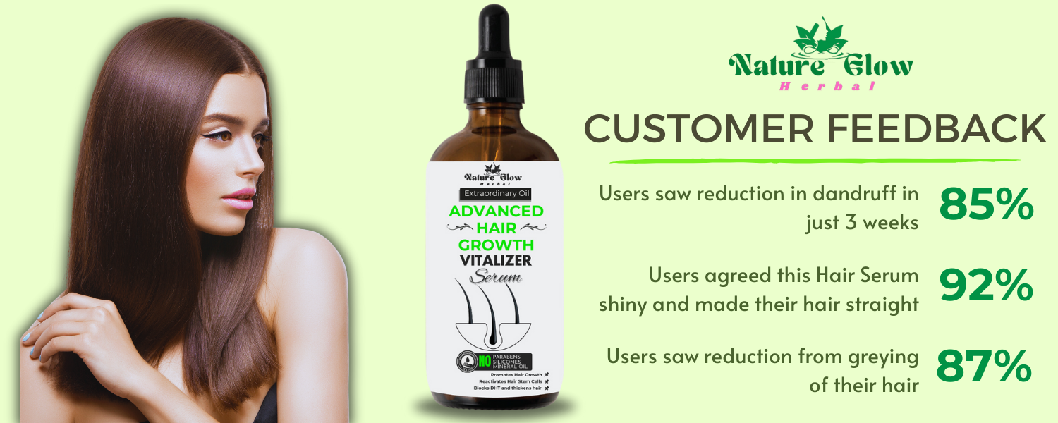 - Denser, Fuller Hair: By fortifying hair follicles at their base, Nature Glow's Vitalizer Serum helps to encourage denser, thicker hair.