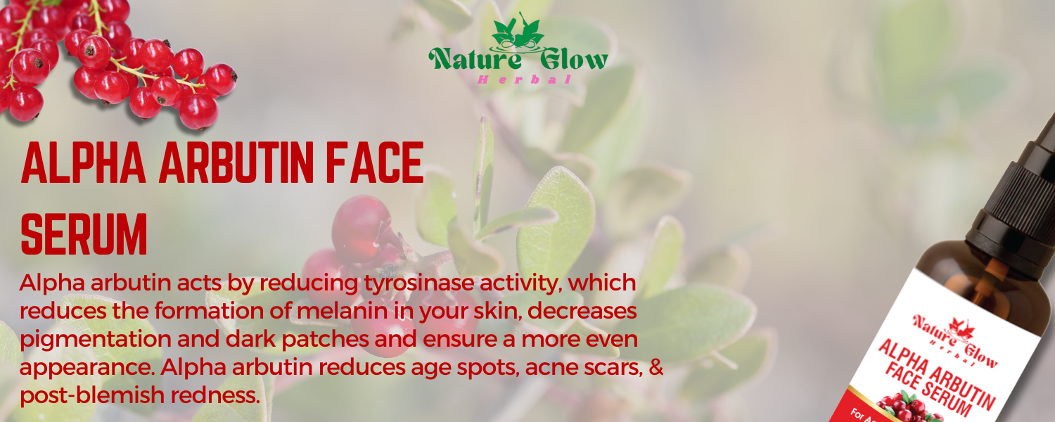 Description:-Discover the way to a complexion that glows naturally with Nature Glow ALPHA ARBUTIN Face Serum. Our potent formula uses Alpha Arbutin's brightening qualities to enhance your skin's radiance and fade dark spots. Bid farewell to uneven skin tone and welcome a perfect complexion that radiates life and health. This serum is a complete skincare solution, not just a brightening one.