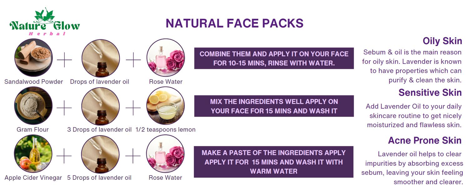 - Skin Care Benefits: Lavender oil is known for its skincare properties. It helps to nourish and rejuvenate the skin, reducing acne, blemishes, and signs of aging.