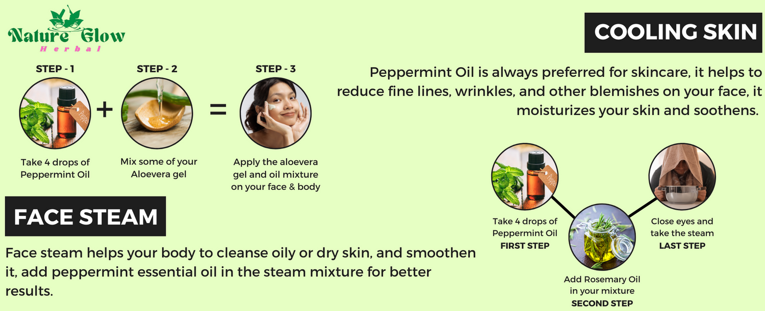 Take 2-3 dropes of Pappermint Essential oil and mix with carrier oil.Gently apply on skin,Hair, body