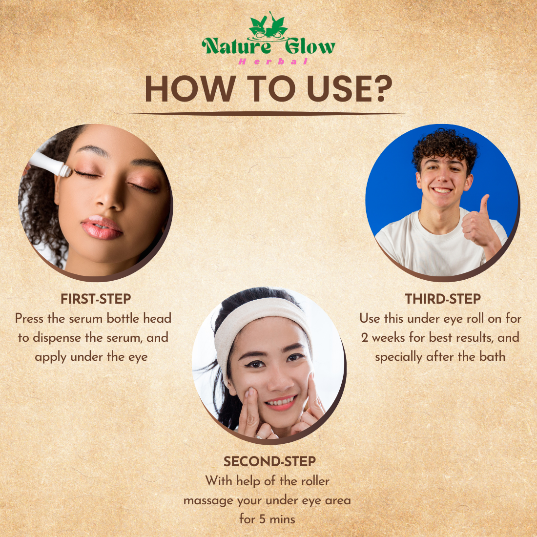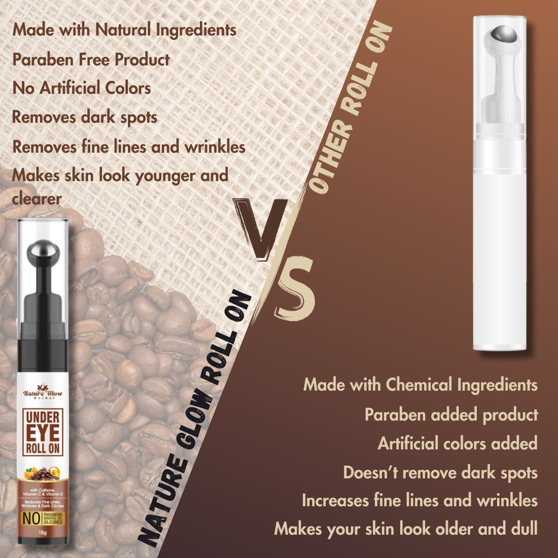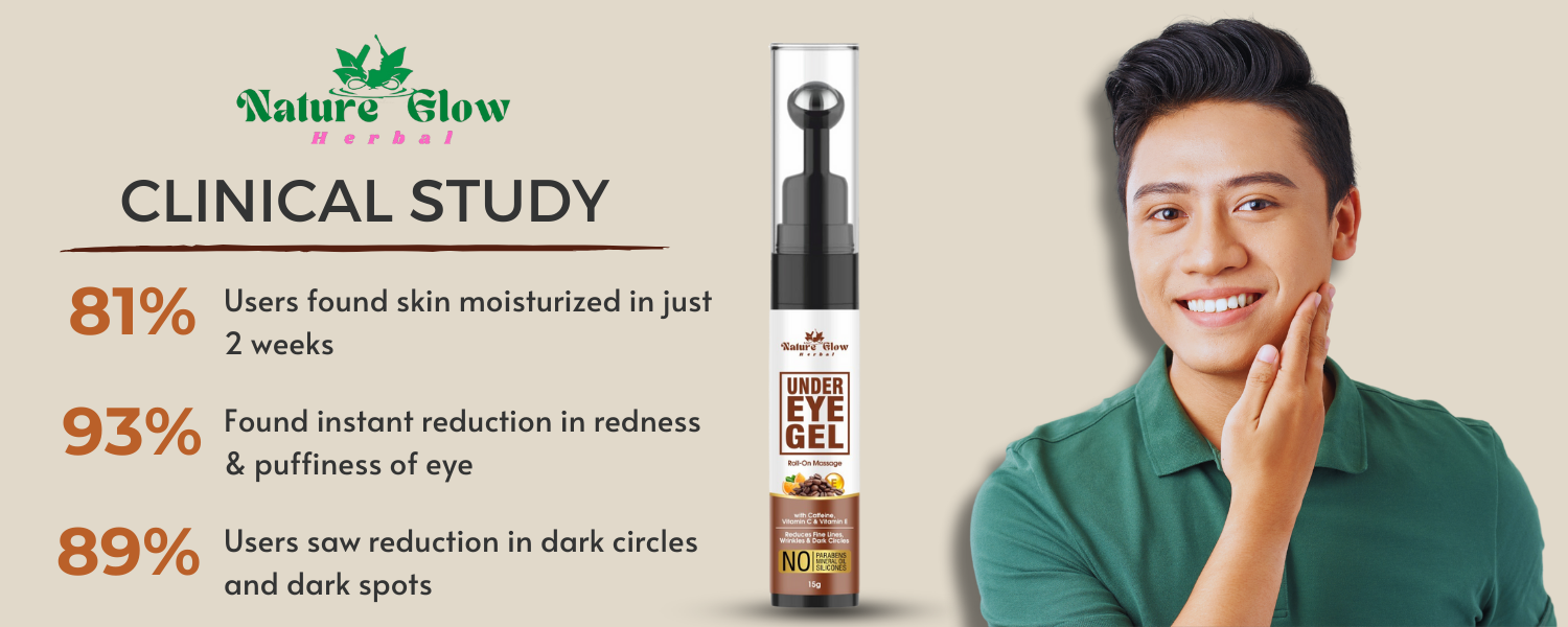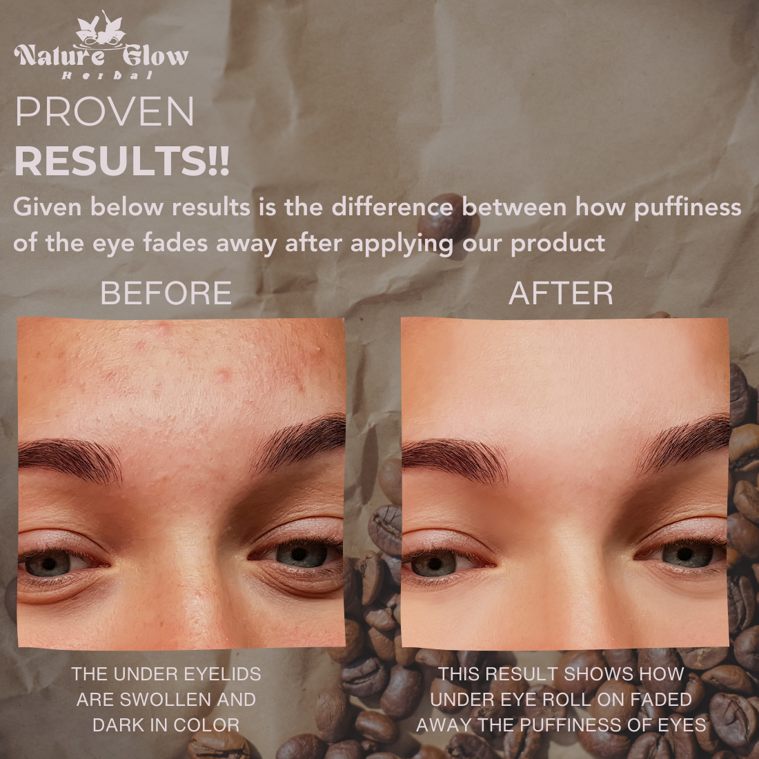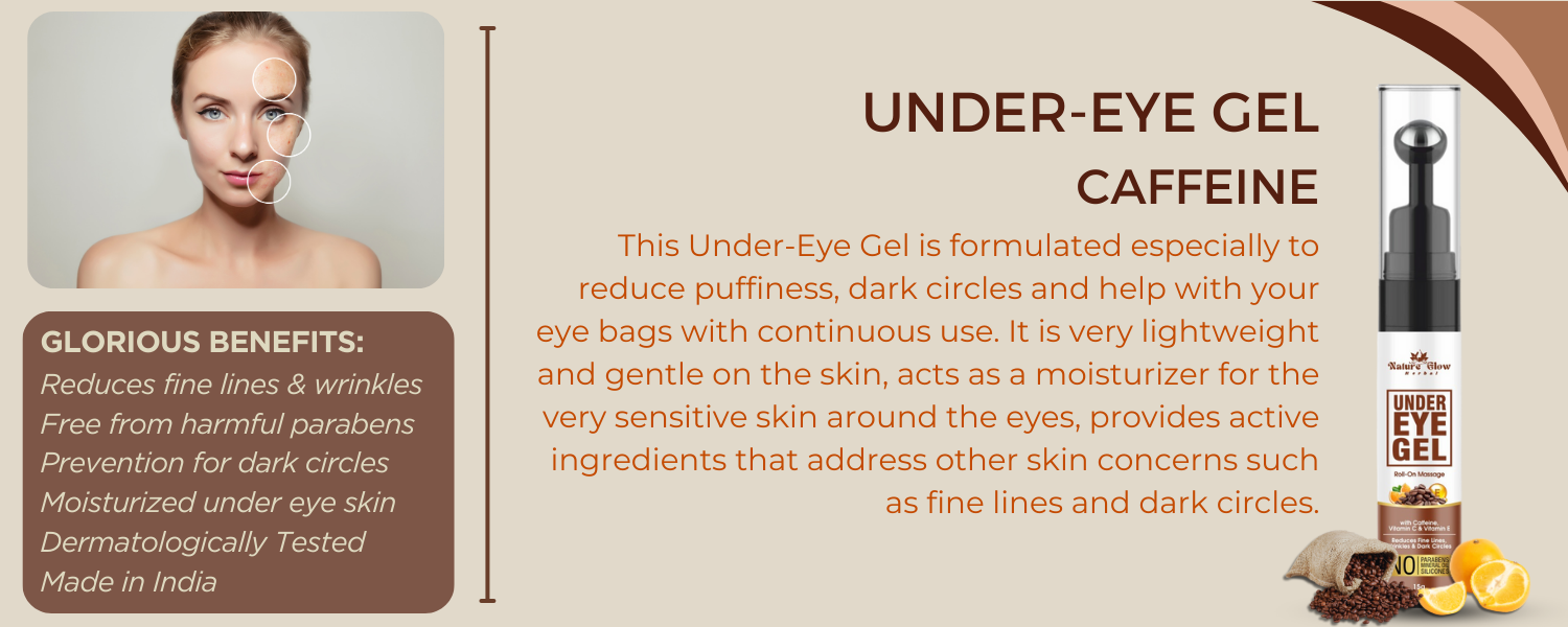 - Revitalise Fatigued Eyes: Our Nature Glow Under Eye Gel Roll-On, which is infused with strong caffeine, helps combat dark circles and puffiness while providing a revitalising boost to tired eyes. Applying the gel is simple and accurate with a roll-on applicator, which guarantees that the gel is precisely applied to the sensitive area beneath the eye