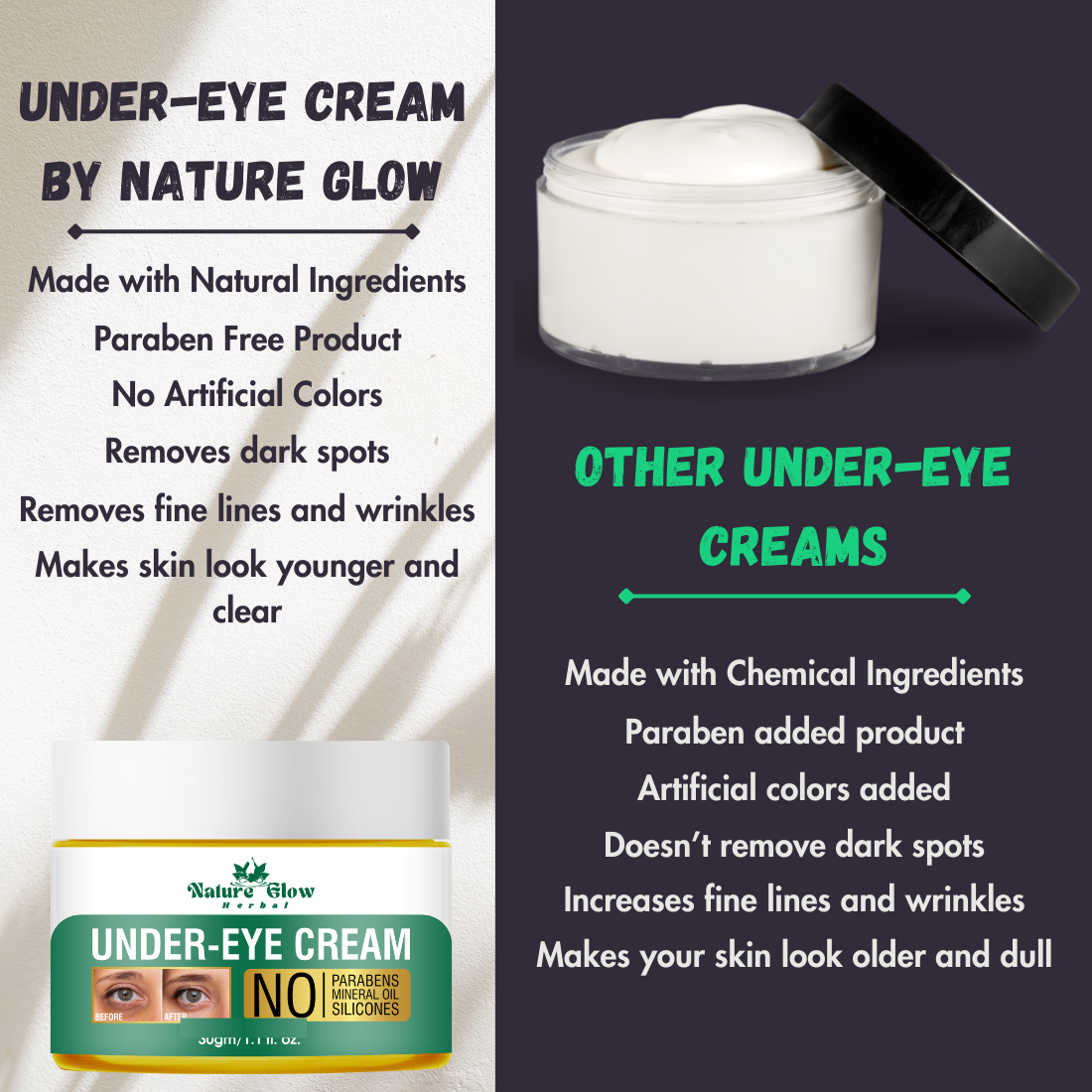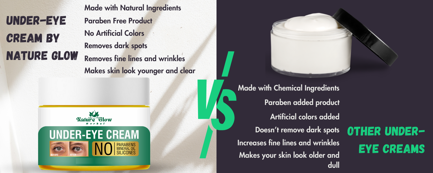 - Rejuvenate Your Eyes: Nature Glow Under Eye Cream is a concentrated mixture of organic components intended to revitalise and invigorate the sensitive skin surrounding your eyes.