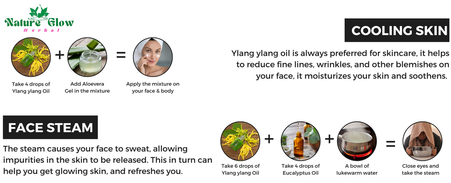 Take 2-3 drops of Ylang Ylang Essential oil and mix with carrier oil Gently apply on skin, Hair ,body.