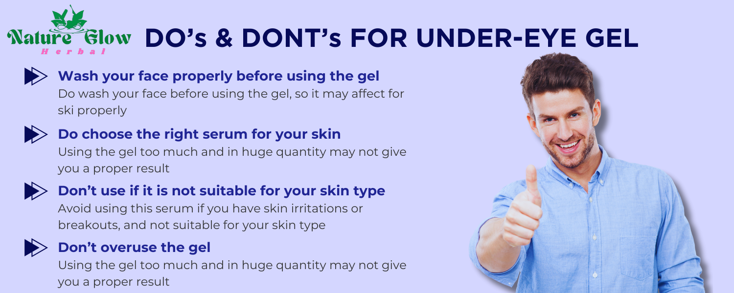 Cream:-With Nature Glow Under Eye Cream, find out the key to younger, brighter eyes. Our sophisticated formula targets common under-eye issues like puffiness, fine lines, and dark circles by combining the power of natural ingredients. Our cream, enhanced with [important ingredients], brightens and revitalises while also adding hydration for a look that is renewed and radiant. Bid farewell to eyes that appear tired and hello to a refreshed, younger version of yourself. All skin types can benefit from our mild and non-irritating formula, which makes it a flexible addition to your regular skincare regimen. Use Nature Glow to change the way you take care of your sensitive eye area.