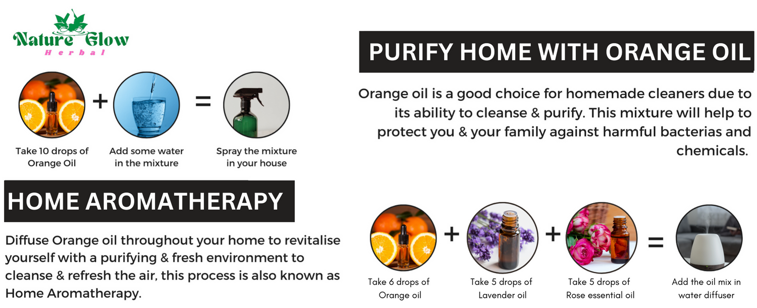 Orange :-Extracted from the finest oranges, our orange essential oil is for its uplifting aroma Use it for aromatherapy, massage, diffusing, skincare, or DIY projects to experience its multiple benefits. Create a calming atmosphere and reduce stress with the soothing fragrance of orange essential oil. Its versatility extends to being a key ingredient in beauty products, candles, soaps, and more. Utilize its natural cleaning properties to remove grease, grime, and unpleasant odors. Rest assured, our orange essential oil is of premium quality, carefully sourced for maximum potency.